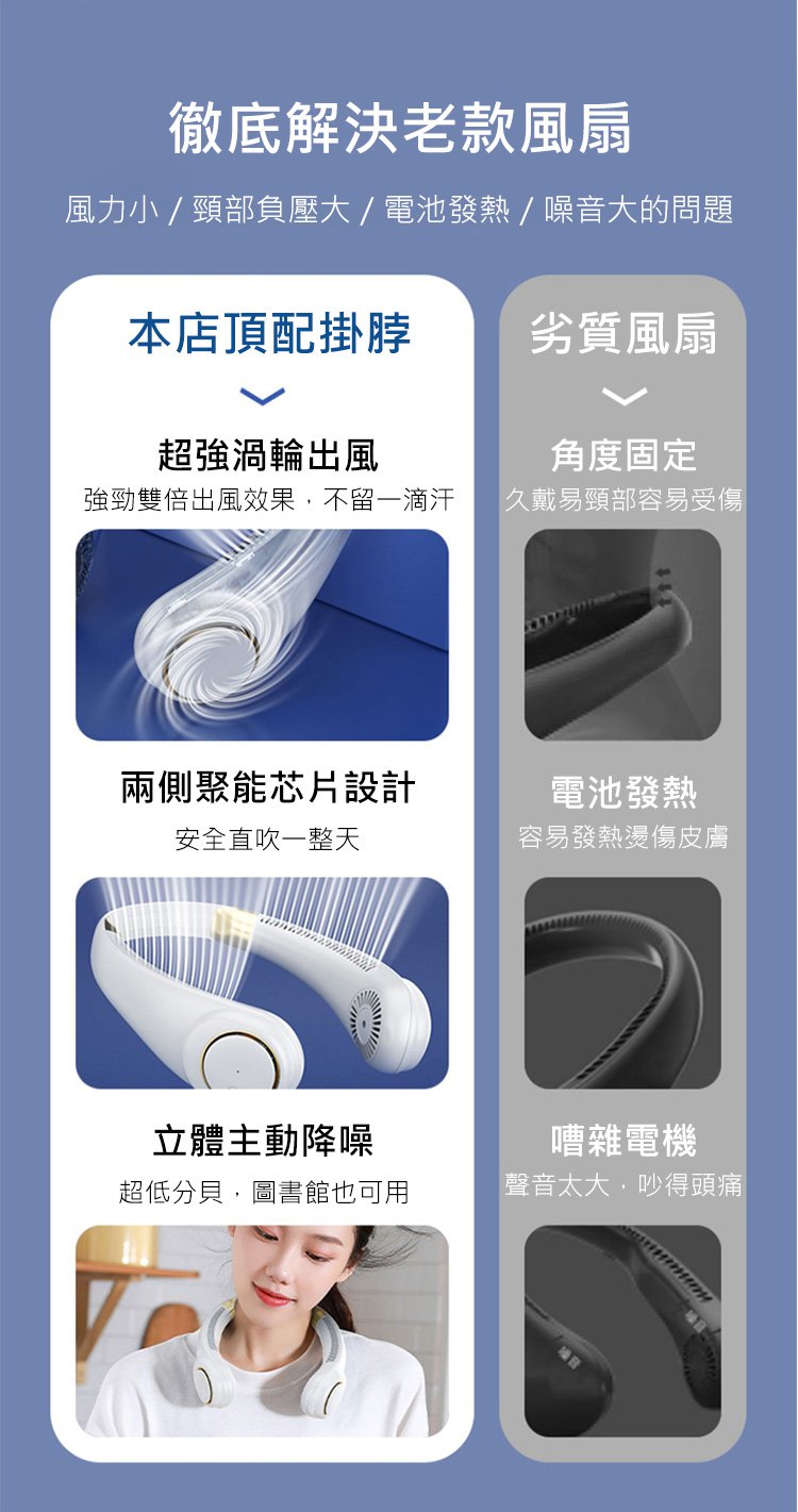 2分鐘前數顯大風力靜音掛脖風扇 - 限時促銷:2入組$1299