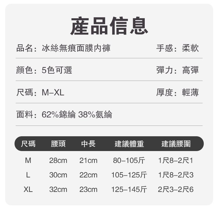 20分鐘前【爆款】中腰蜜桃臀無痕面膜內褲 - 5條(每個各1個)225