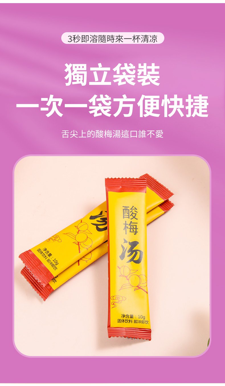 15分鐘前【一秒一杯解暑神器】速溶祛火清爽酸梅湯粉 冷熱可沖 酸甜解膩 清爽解暑 百搭飲品 - 【買80送80】160條NT$ 1598