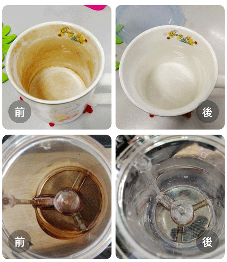 5分鐘前祛除茶垢清潔劑,強效去清,免刷洗,檸檬酸除垢劑,活氧科技,輕鬆除垢! - 【超夯活動】四入組$1090