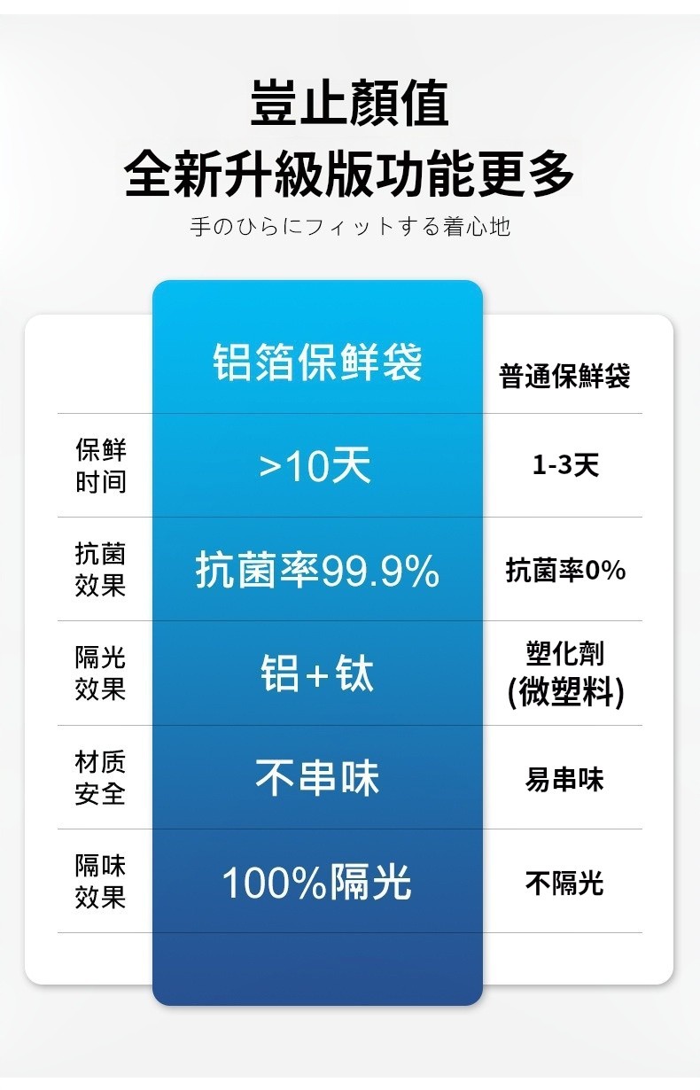 20分鐘前日本鋁箔保鮮袋食品級家用密封袋冰箱冷凍專用加厚自封口袋拉鍊式 - 前60名限購多100多得20個『大號鋁箔保鮮袋』到手60個 6入組NT$1098