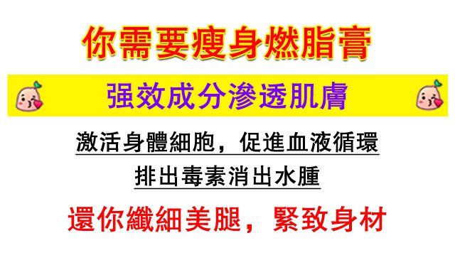 12分鐘前【快速瘦身術】瘦身燃脂膏每日抹一抹,强力吸油,無需節食運動,健康瘦身,一周立馬剷除3kg贅肉!不復胖! - 兩療程【買二送三】遠離水桶腰 窈窕不反彈 5入組NT$1198