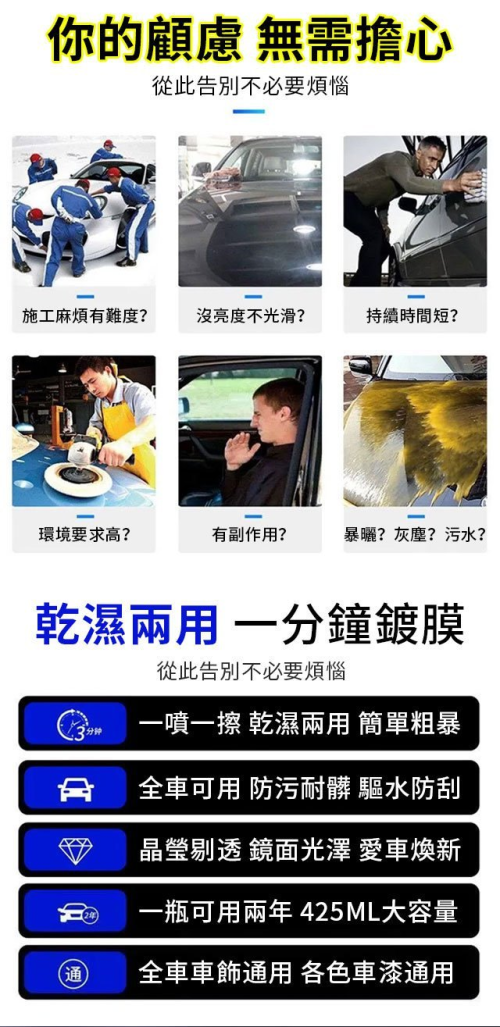 半小時前火爆熱銷中!台灣本土出貨,日本進口速效汽車鍍膜劑,去污+鍍膜 - 【特惠3入組】贈送汽車鍍膜毛巾3條 NT$998