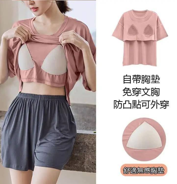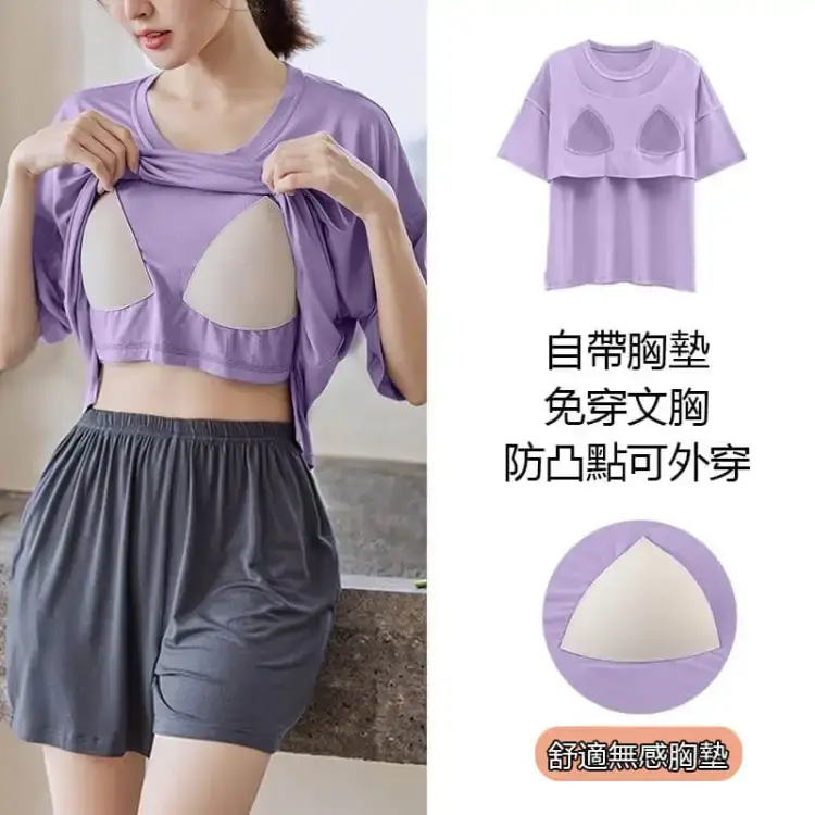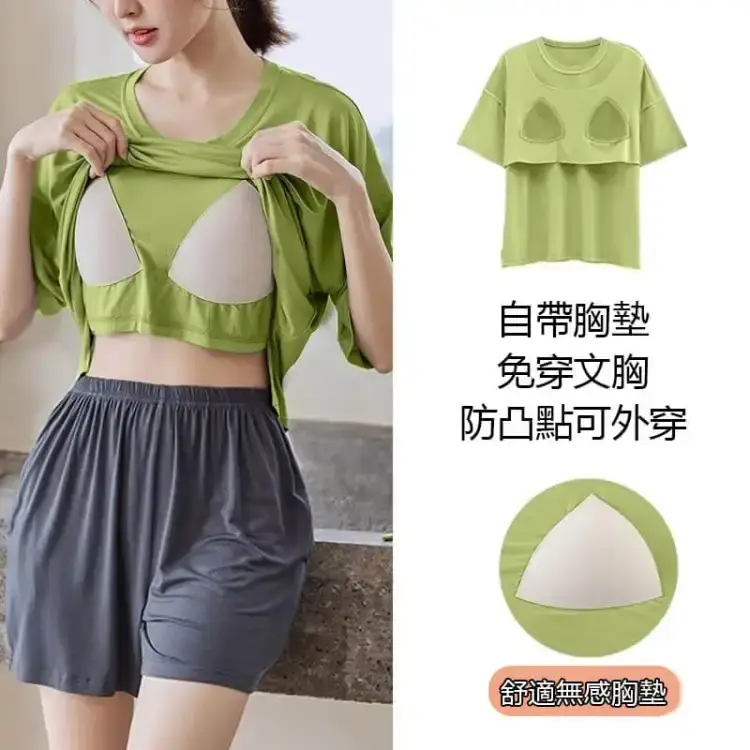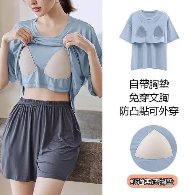 半小時前帶胸墊睡衣防走光睡衣女夏季短袖短褲薄款寬鬆家居服裝 - 【買一送一】 2入組 NT$1098【均價NT$549】