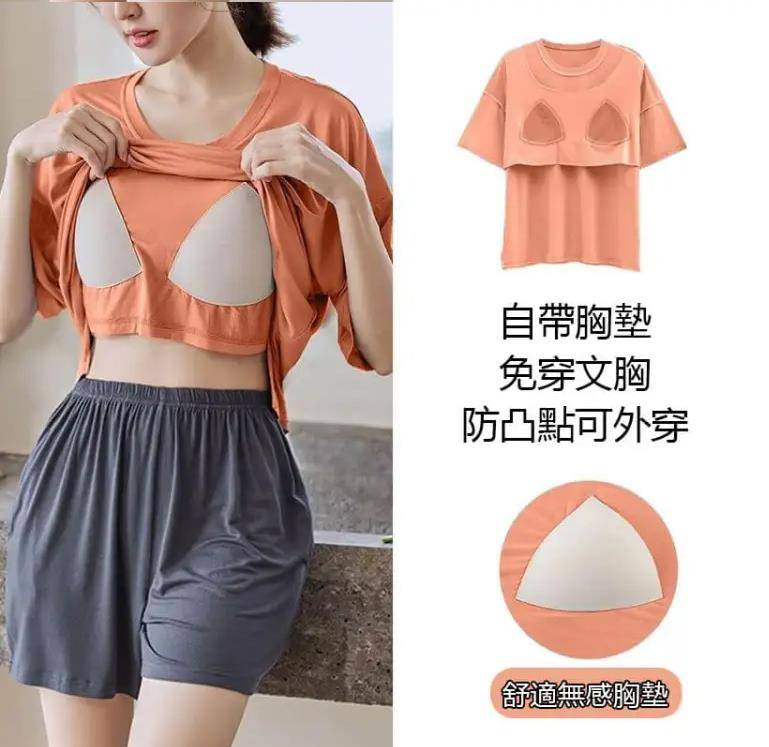 半小時前帶胸墊睡衣防走光睡衣女夏季短袖短褲薄款寬鬆家居服裝 - 【買二送二】 4入組 NT$1498【均價NT$374】